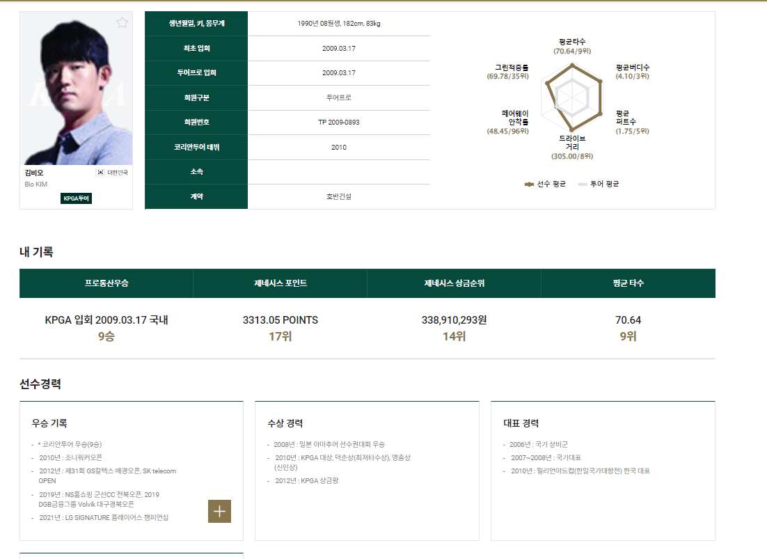 데뷔 : 2009년 KPGA 입회
