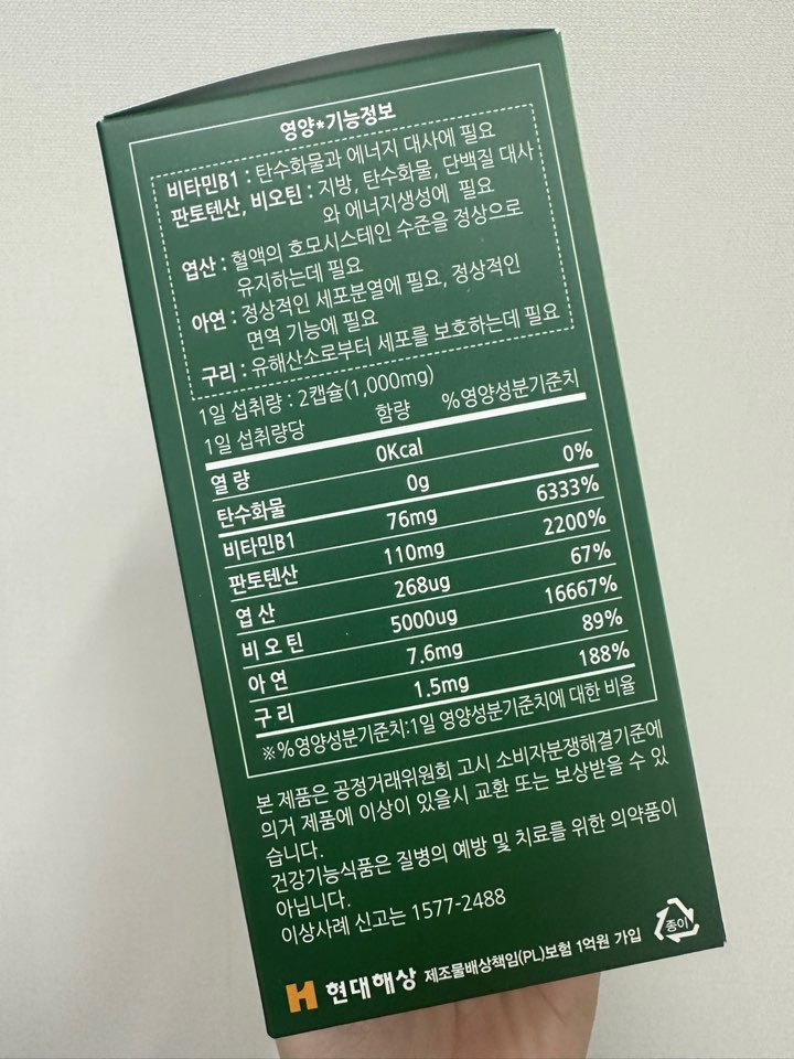 비타민B1, 판토텐산, 비오틴, 엽산, 아연, 구리