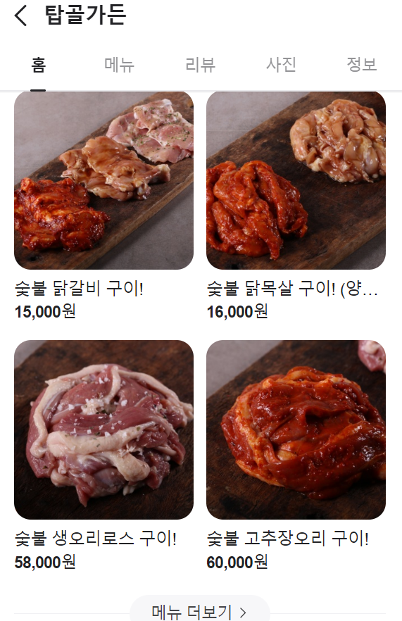 양념 닭목살 구이 (1인분 200g) 16,000원