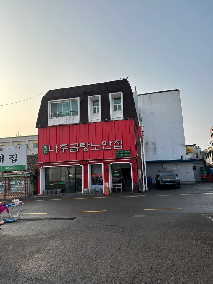 나주 곰탕거리에 위치한 3대 나주곰탕 노안집은 빨간색 간판이 눈에 띄어서 놓칠일이 없습니다.