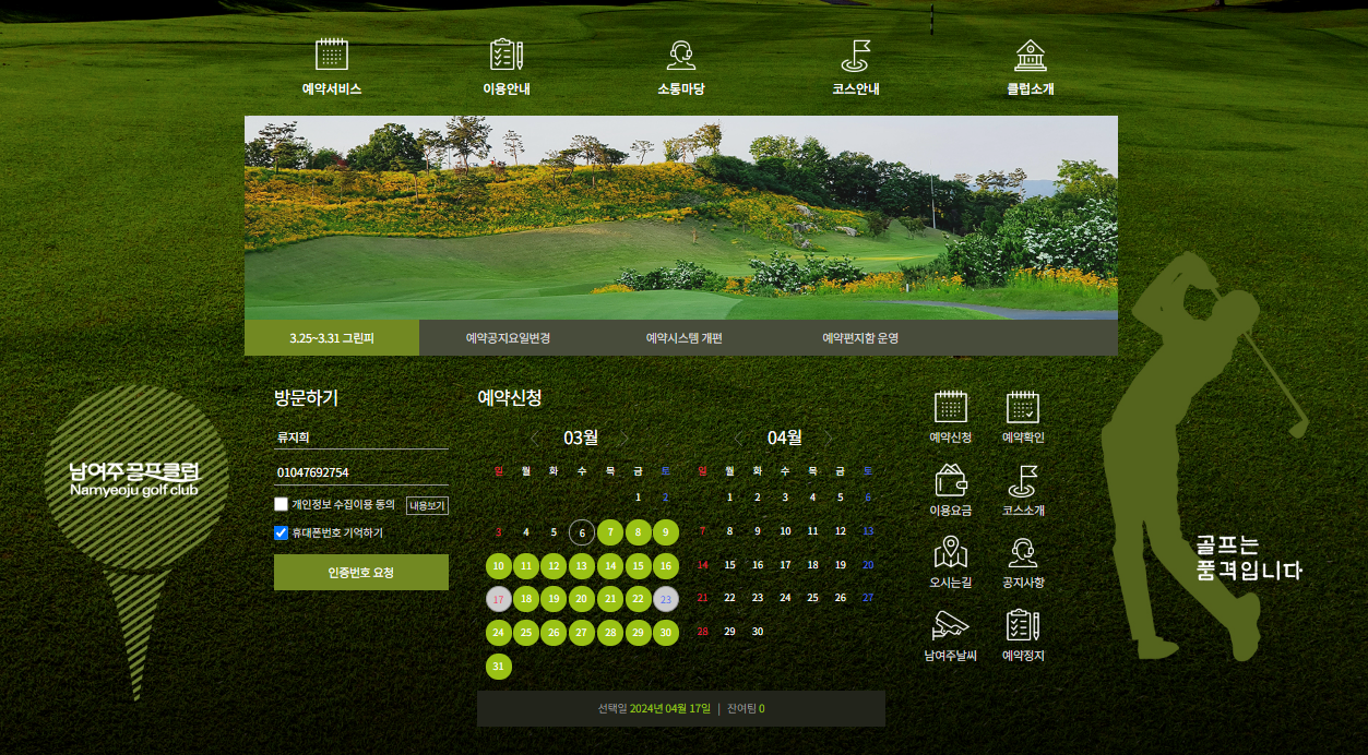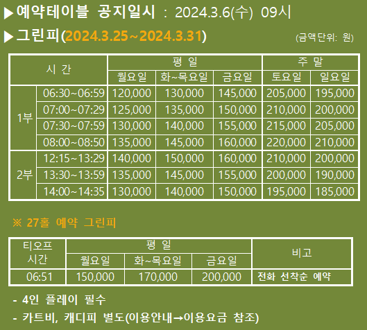 남여주 골프클럽은 매주 그린피에 대한 공지를 홈페이지에 진행합니다.