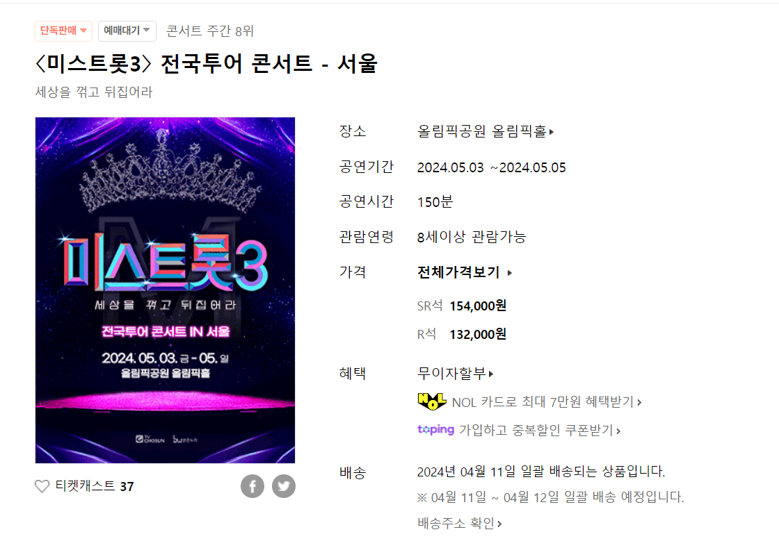 | 나훈아 2024 고마웠습니다 라스트콘서트 ( 예매사이트, 콘서트일정, 가격, 장소, 예매방법, 예매팁) (0) | 2024.03.12 |