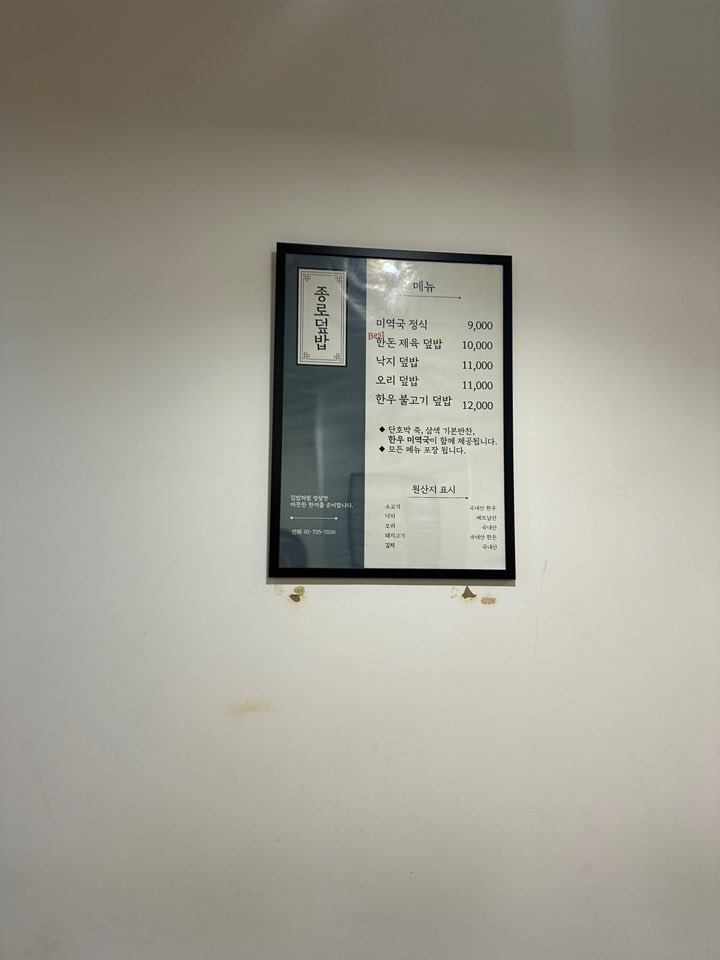 종로덮밥의 메뉴는 아래와 같습니다.