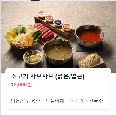 소고기 샤브샤브 맑은 13,000원