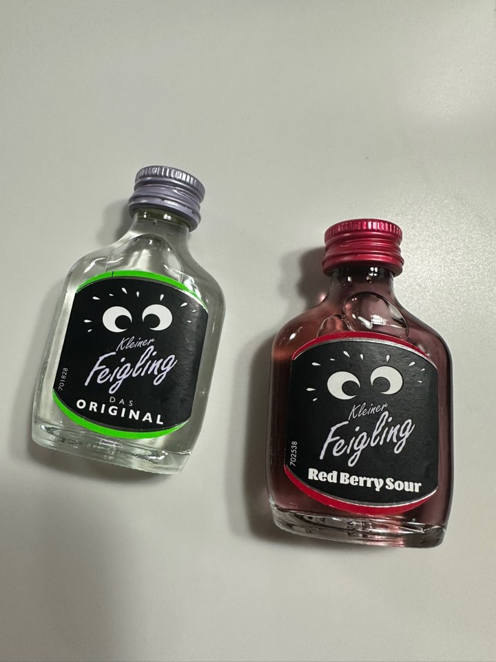 귀여운 술로 보여서 사게된 술클라이너 파이클링 Kleiner feigling 은 20도의 보드카라고 합니다. 술을 잘 못마시는 겁쟁이들을 위한 파티술로 알려져있고, 귀여워서 기념품으로 사오기 앙증맞은 사이즈 입니다. 다양한 맛들이 있습니다.