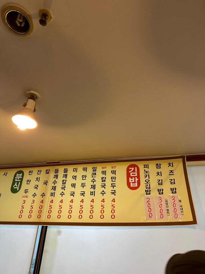 비빔냉면, 열무냉면, 찐만두, 잔치국수, 칼국수, 들깨칼국수, 떡국 , 얼큰수제비를 비롯해서 김밥메뉴까지 있습니다.