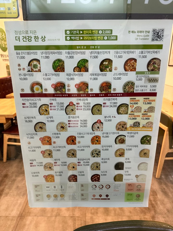 본죽 & 비빔밥 종로 르메이에르점 메뉴 및 추천메뉴