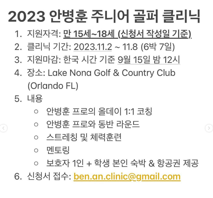 안병훈 프로는 후배들을 위한 마음씀씀이도 남다른걸 인스타그램으로 알 수 있습니다. 매년, 주니어 골퍼들을 위한 사비로 클리닉을 진행합니다.