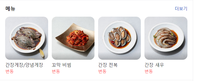 간장게장 양념게장 외에도 간장전복, 간장새우, 꼬막 비빔밥등이 있었습니다. 보통은 한상차림으로 나오고 가격은 싯가라고 적혀져 있는데 4만원 정도의 가격입니다.