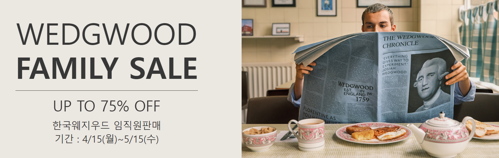 고급스럽고 세련된 테이블웨어, 티웨어로 사랑받는 웨지우드에서 임직원 세일을 실시합니다. 최대 75%의 할인율로 다양한 제품들이 준비되어 있다고 합니다.