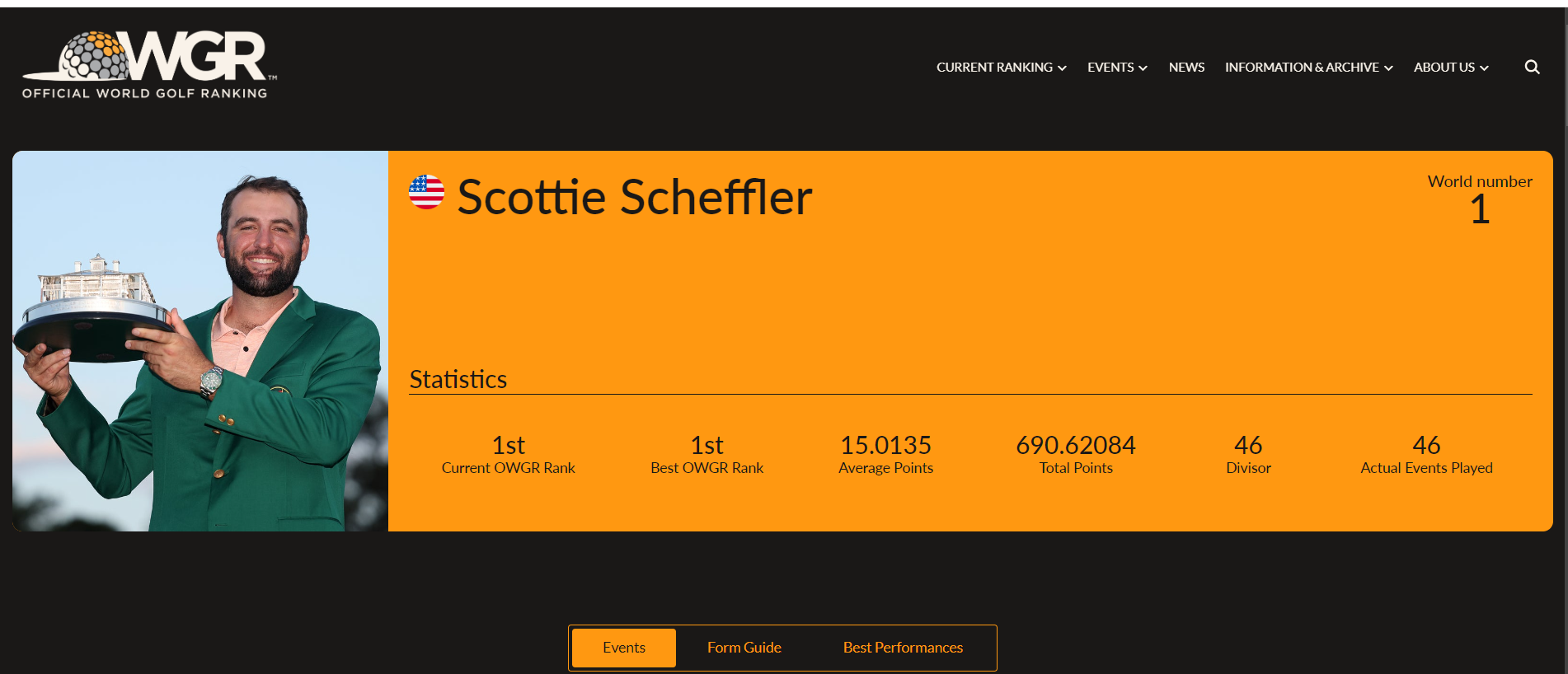 official world golf ranking 라는 사이트에서 세계남자 골프 순위 즉 남자골프세계랭킹을 확인할 수 있습니다.