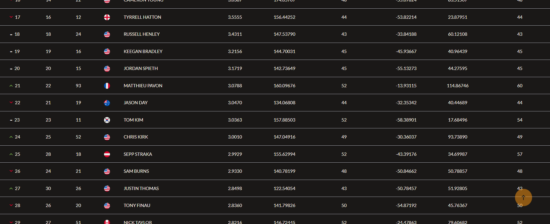 2024년 4월 마지막주 남자골프 세계랭킹 WEEK 16 - 21ST APRIL 2024