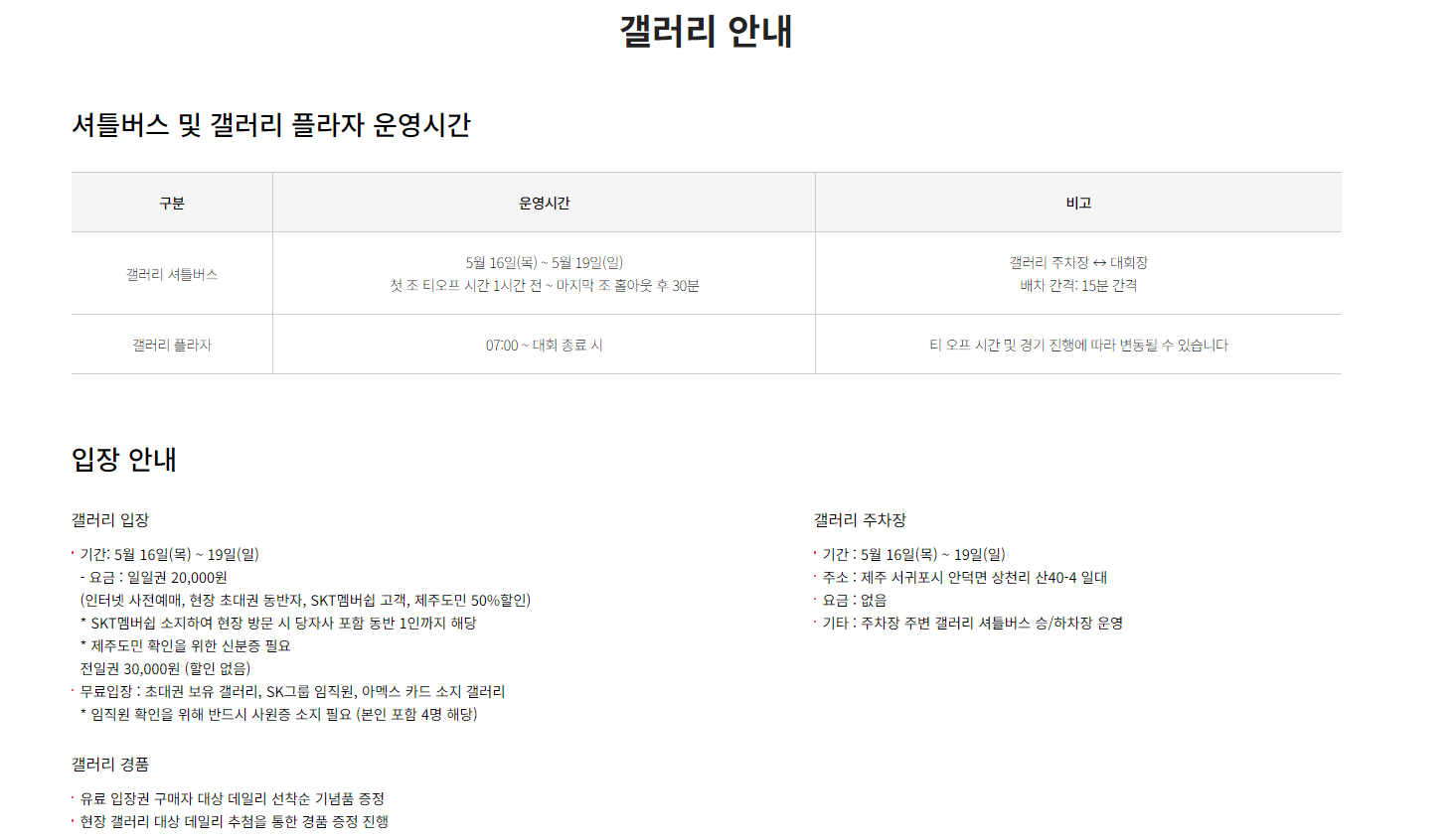 (인터넷 사전예매, 현장 초대권 동반자, SKT멤버쉽 고객, 제주도민 50%할인)