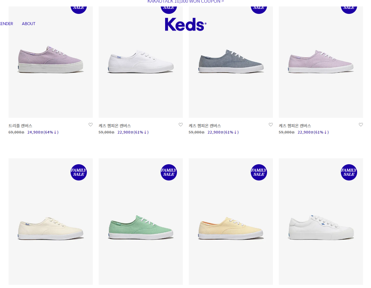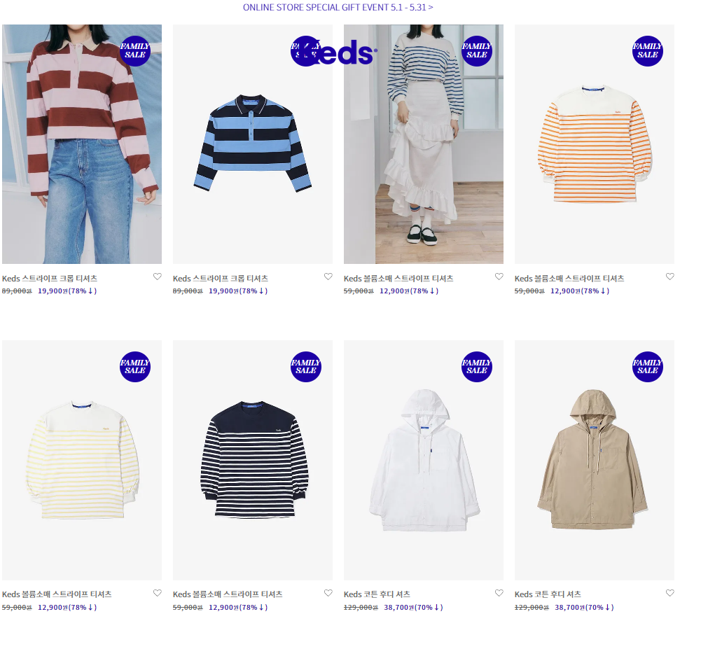 스니커즈로 잘 알려진 케즈에서 2024년도 패밀리세일을 시작합니다. 스니커즈 이외에도 의류 악세사리등 다양한 품목을 합리적인 가격으로 소개합니다.