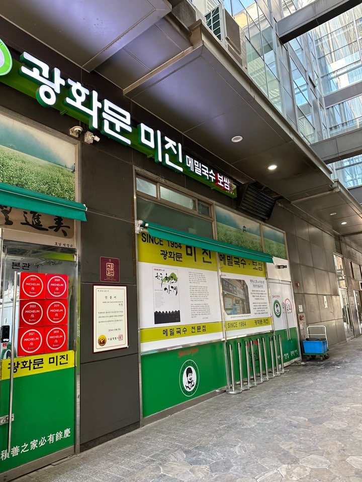 광화문 및 종각 일대에 미슐랭 가이드에 소개된 메밀맛집 미진에 대해 소개하려고 합니다. 미진은 1952년부터 광화문 일대를 지켜온 터줏대감인 한국식 냉메밀국수 전문점으로, 일본식 소바 쯔유보다 진한 맛의 간장 육수와 더 쫄깃한 식감의 메밀 면발을 선보입니다.