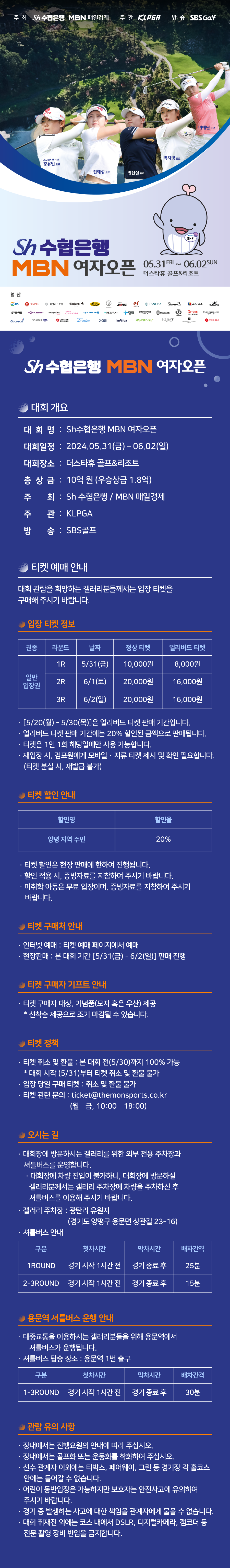 SH수협은행이 새로운 타이틀 스폰서로 참여하는 2024년 KLPGA투어 Sh수협은행 MBN 여자오픈이 5월말에 개최됩니다. 자세한 내용에 대해서 알아보겠습니다.