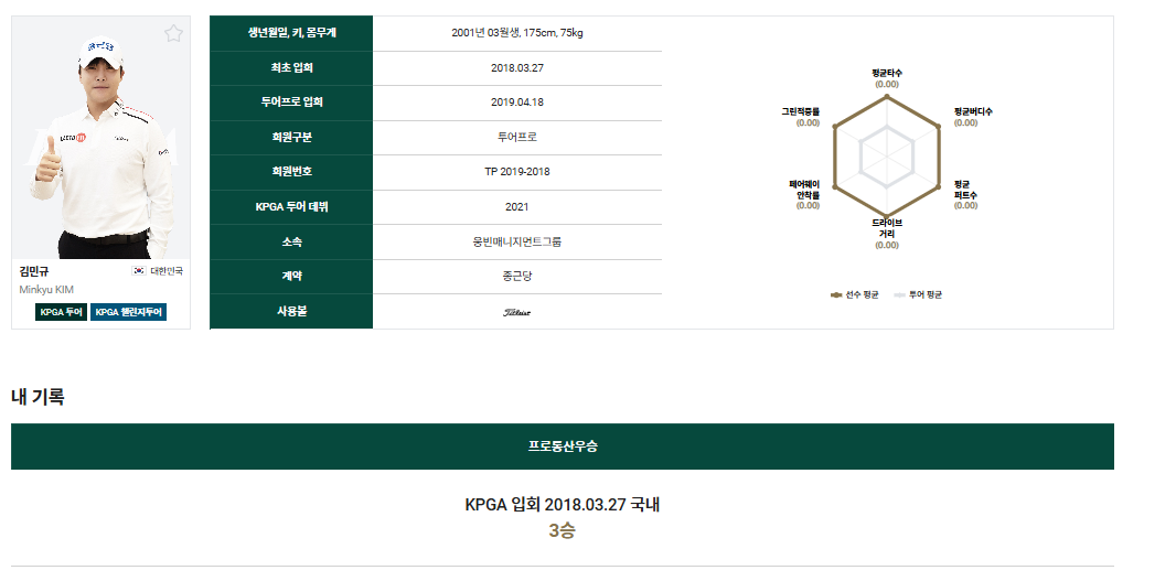 현재 KPGA투어 통산 3승을 기록하고 있는 김민규프로입니다.