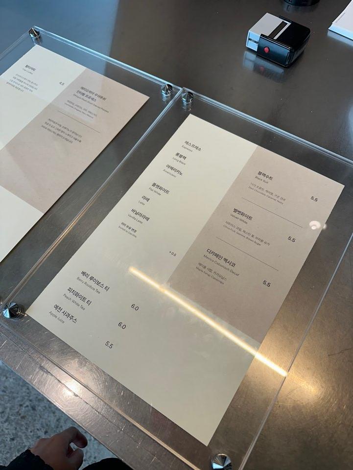 에스프레소, 롱블랙, 아메리카노, 플랫화이트, 라떼, 바닐라라떼 등이 준비되어 있고, 원두에 따라도 선택할 수 있습니다. 빈브라더스의 대표 원두인 블랙수트, 벨벳화이드로 준비되어 있습니다.