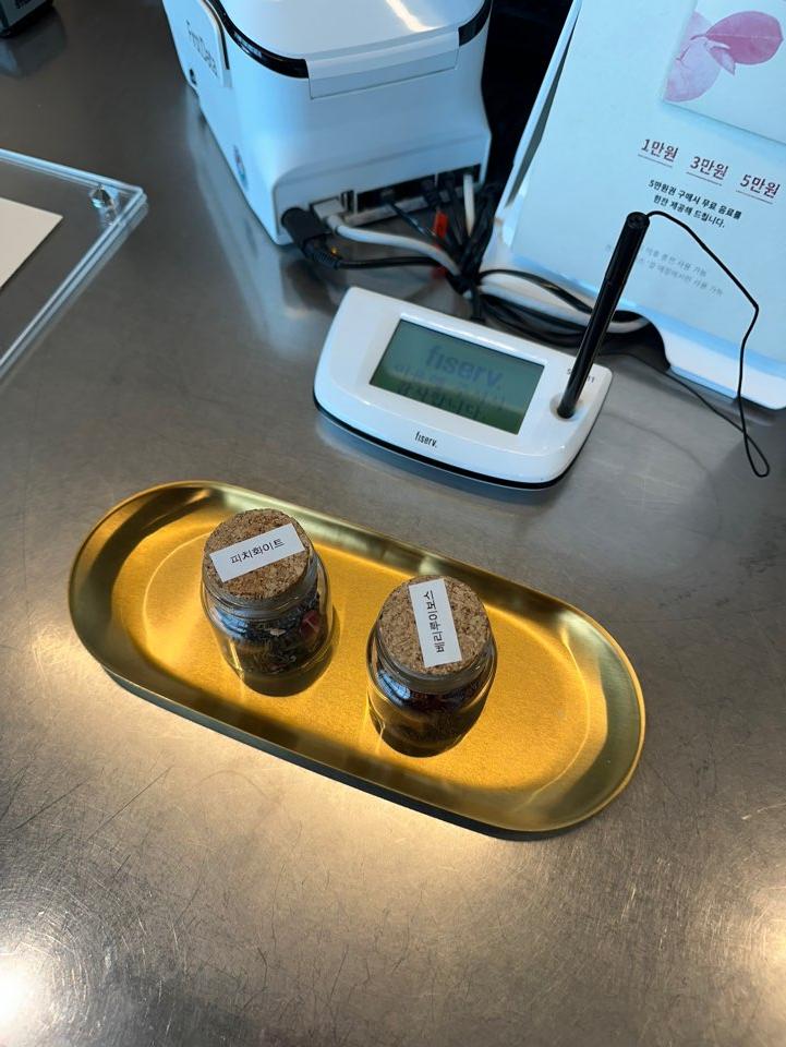 또한, 카페인을 먹지 않는 사람들을 위해서 베리 루이보스티, 피치화이트 티, 예천 사과주스가 준비되어 있습니다.
