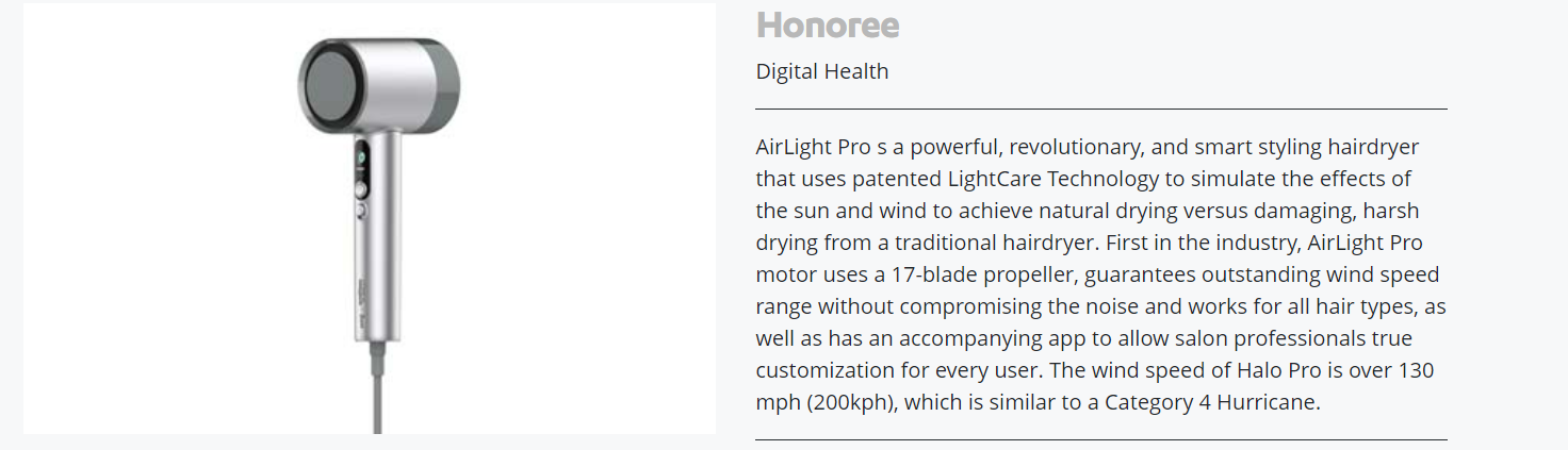 로레알은 이번 기조연설과 함께, 기존에 열로 머리를 말리는 헤어드라이 방식이 아닌 이노베이션한 적외선으로 머리를 말릴 수 있는 헤어드라이어 '에어라이트 프로'(AirLight Pro)도 공개하여서 많은 사람들의 주목을 끌었습니다. 기존 다이슨 기술에 대적할 만한 혁신적인 기술이라고 평가되고 있습니다.