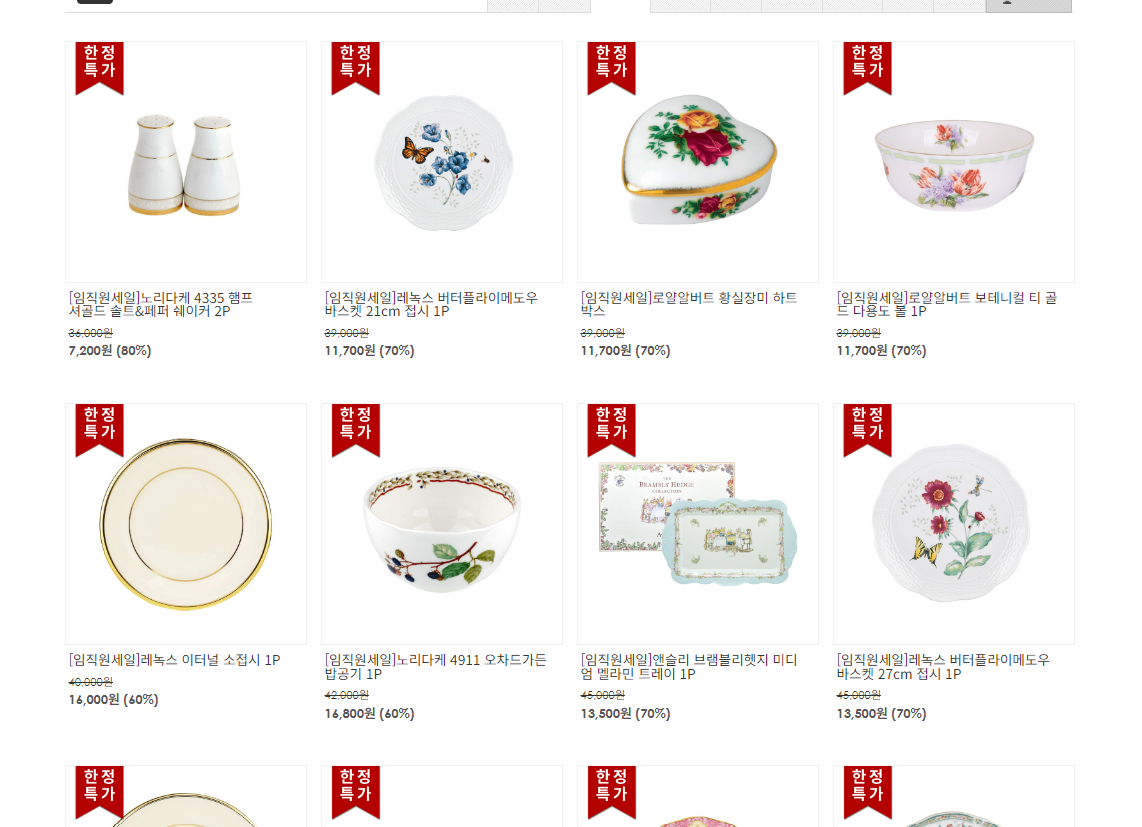 세일브랜드 : 노리다케, 앤슬리 , 로얄튼, 야드로 램프, 로얄알버트, 레녹스