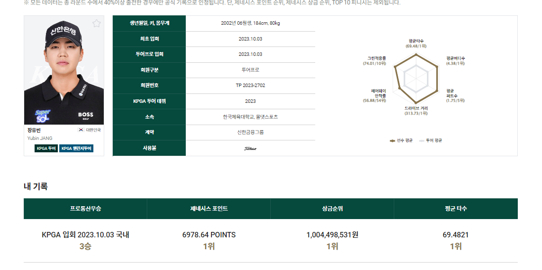 또한 올해 2024년에는 뛰어난 기량으로 모든 부분에서 선두를 달리고 있습니다. 현재 KPGA투어 통산 3승을 기록하고 있습니다.