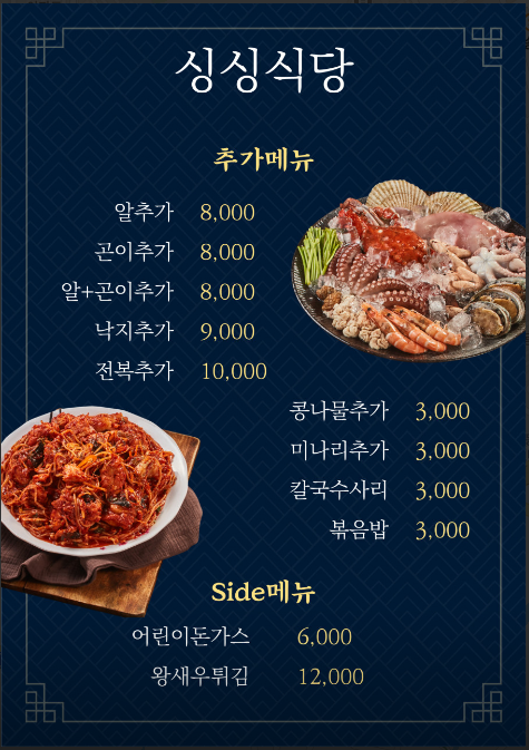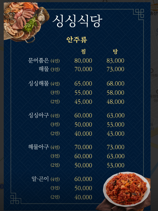 매일매일 공수해오는 살아있는 싱싱한 해물을 합리적인 가격으로 맛볼 수 있는 프리미엄 해물찜 전문점 [ 싱싱식당 ]