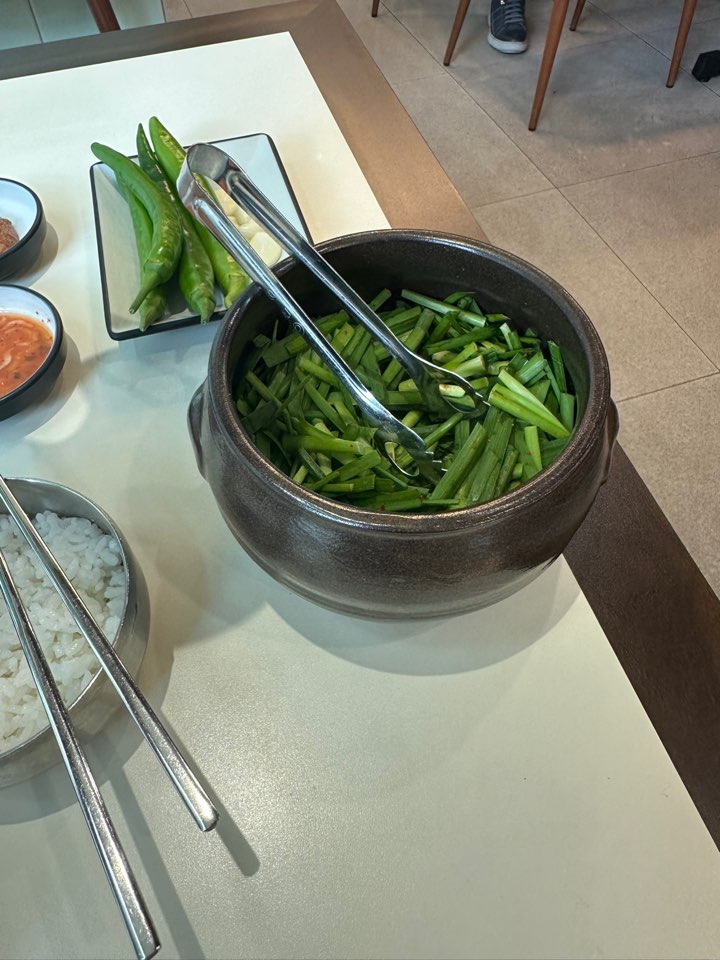 또한, 부추를 올려서 잡내 및 좀 더 깔끔함을 더할 수 있었습니다.