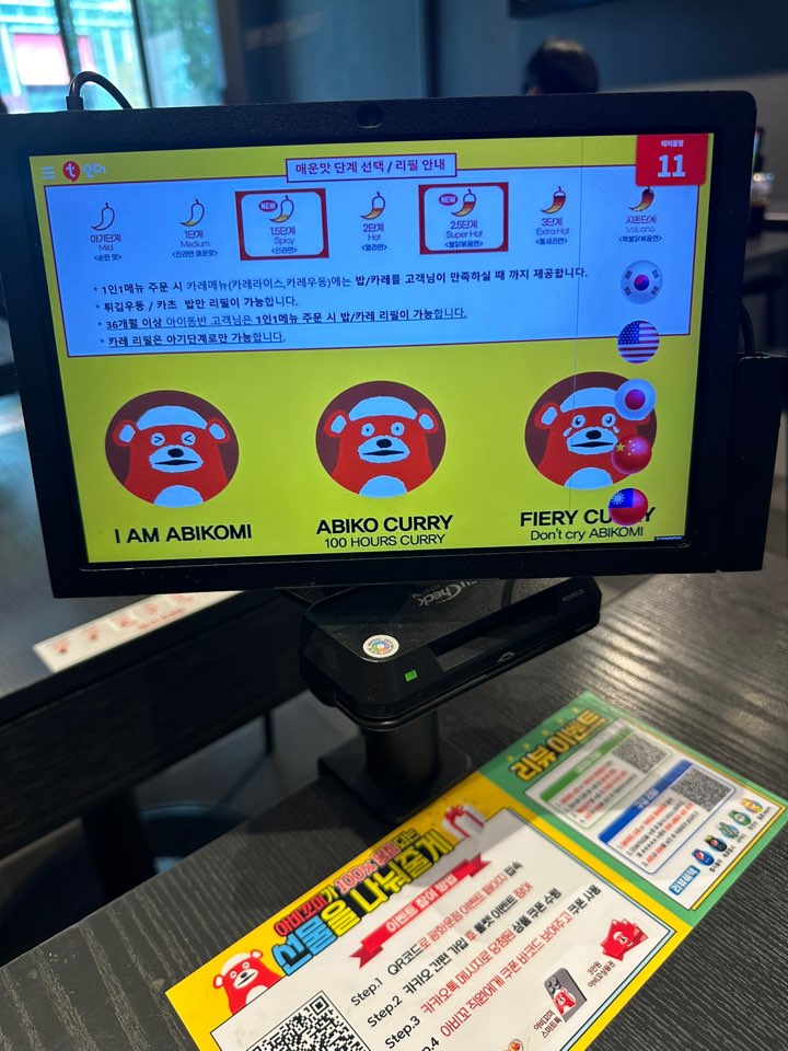 아비꼬카레의 또 하나의 특징은 매운맛의 단계를 조절할 수 있다는 것입니다. 최근에 1.5단계 신라면정도의 매운맛의 레벨과 2.5단계인 불닭볶음면의 레벨을 추가했다고 합니다.
