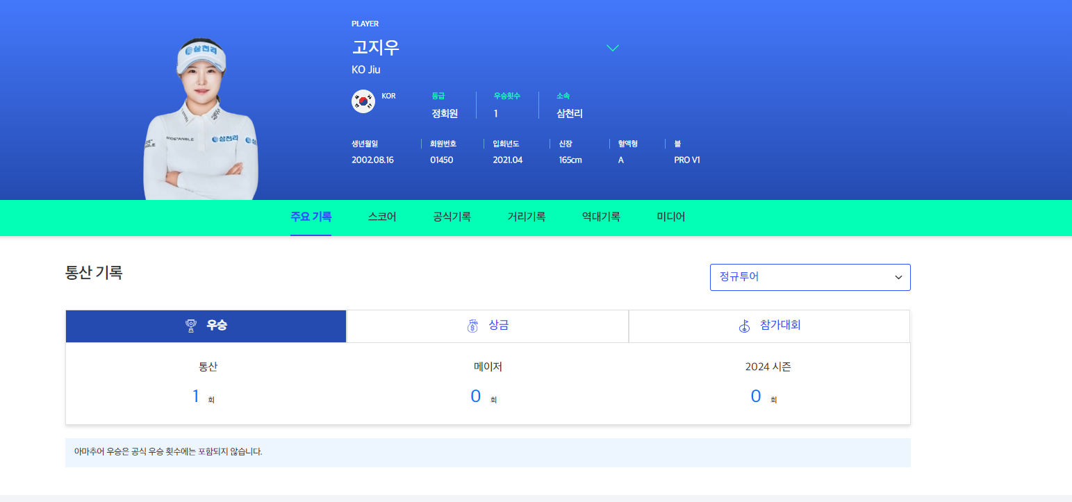 또한, 최근에 하이원CC에서 열린 2024년 하이원리조트 여자오픈에서 버디 폭격기라는 애칭에 걸맞게 수많은 버디를 쏟아내서면서 KLPGA투어 통산 2승을 달성한 고지우 프로입니다.
