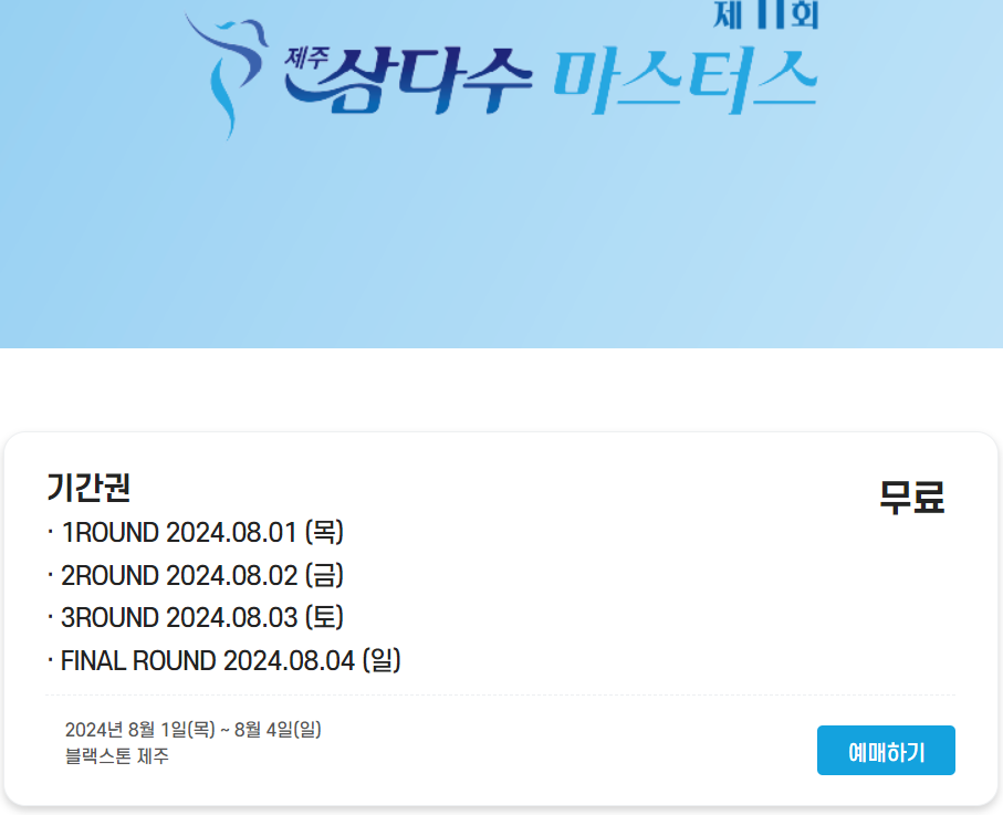이번 제주 삼다수 마스터스 갤러리 입장권은 전일 무료입니다 .