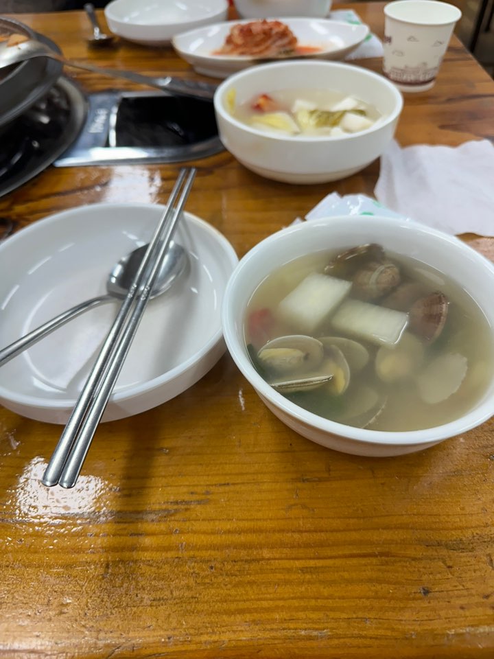 또한, 칼칼한 바지락 국물도 빨간거와 잘 어울립니다.