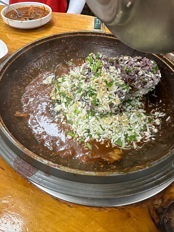 빨간거를 시키게 되면, 안에 고기가 들어있고, 전골을 끓을 때쯤 산낙지를 직접 넣어주십니다.