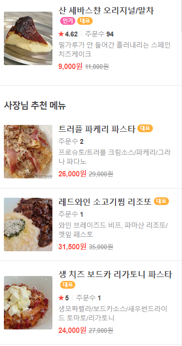 이 날은 추천 메뉴를 위주로 주문을 했습니다 .