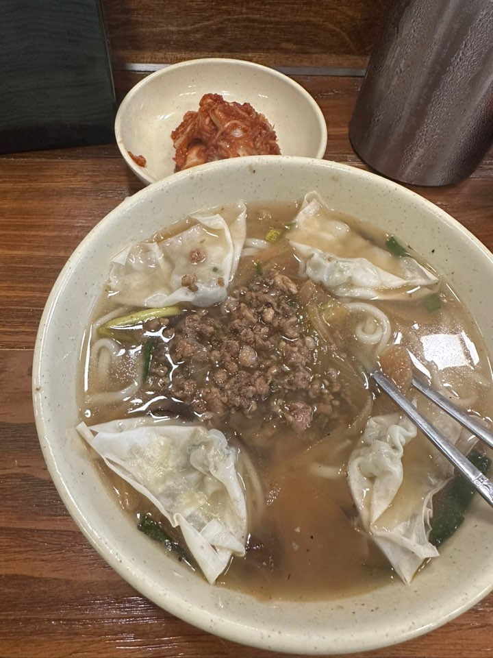 이 날은 국물이 맛있는 명동교자의 대표메뉴인 칼국수를 시켰습니다. 칼국수 국물이 밥을 말아먹고 싶은 마음이 들게 했습니다.