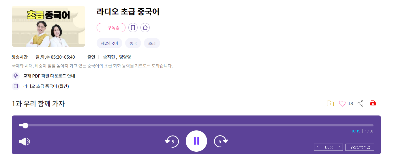 원활하게 소통할 수 있는 날을 꿈꾸면서 중국문화를 익힐 수 있는 좋은 프로그램으로 EBS 초급중국어를 추천드립니다.