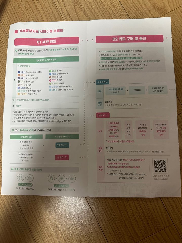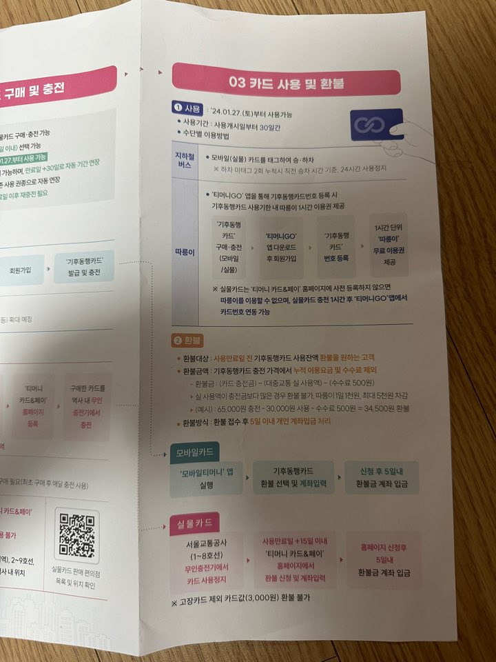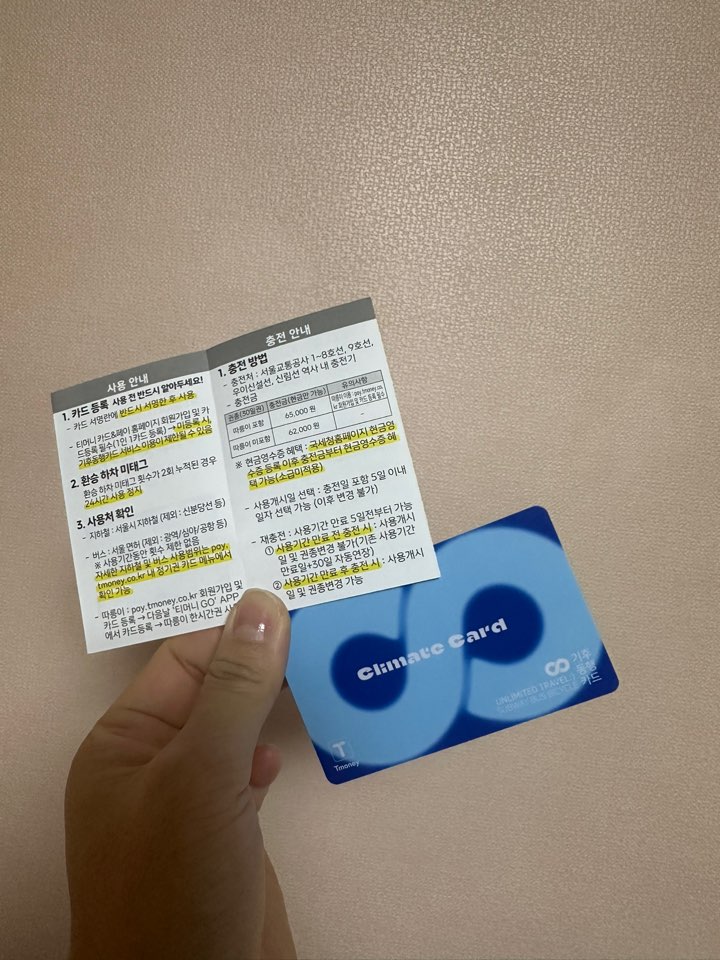 기후동행카드를 사니 친절하게 사용법을 같이 전달해주셨습니다.