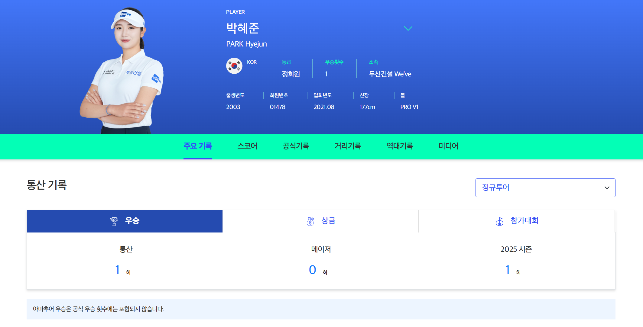 KLPGA투어 - 박혜준프로 우승기록