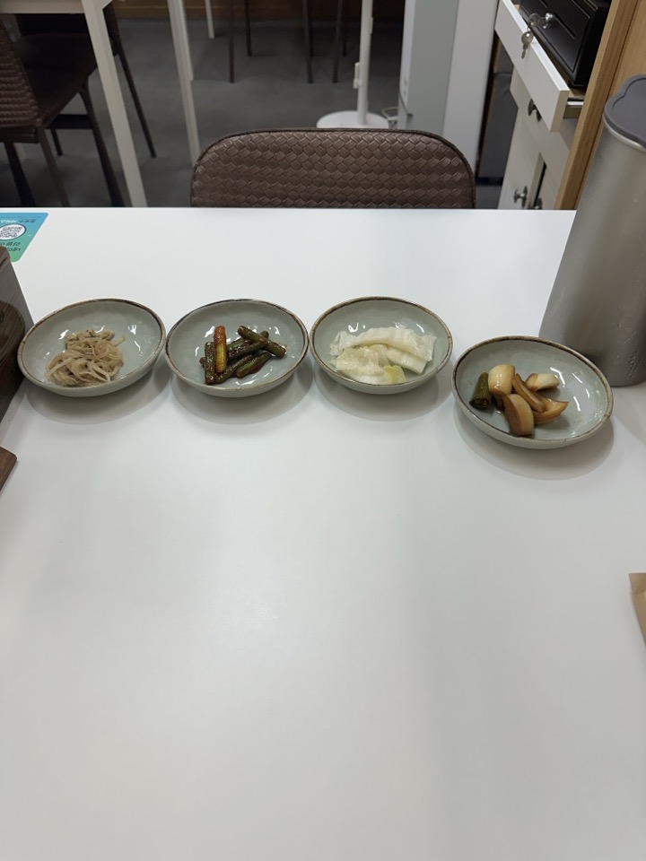 음식을 주문하면 깔끔한 밑반찬이 나옵니다.