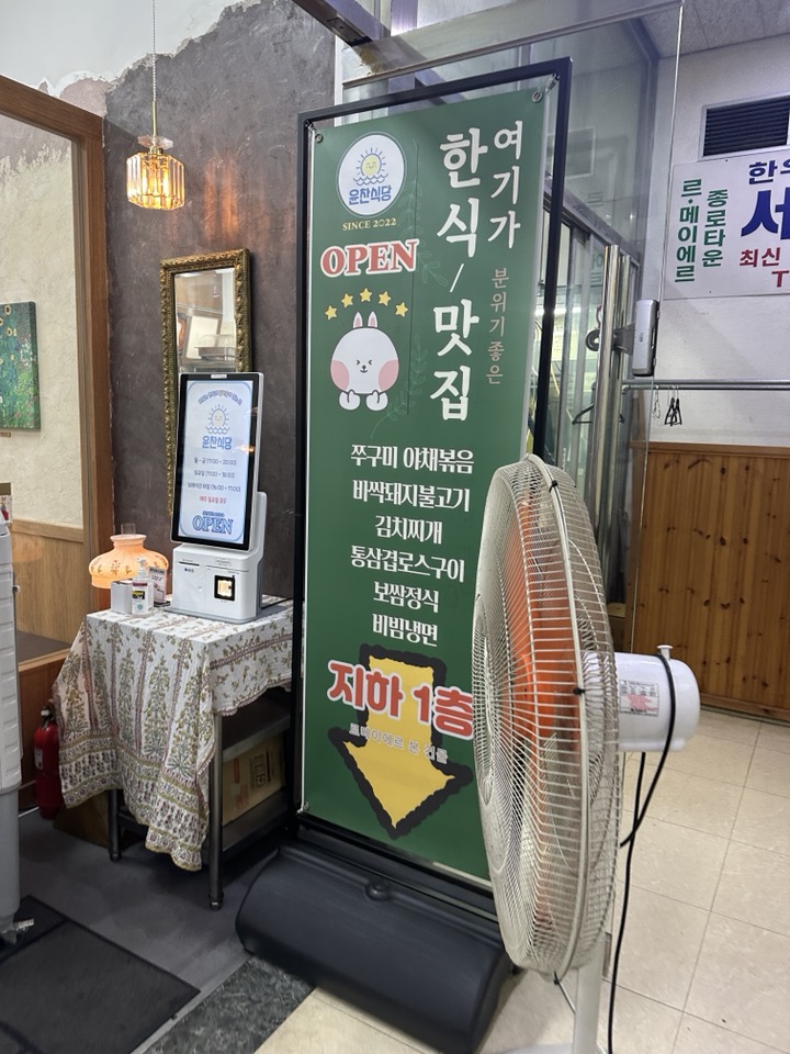 먼저, 윤찬식당 입구에 있는 키오스에서 주문하고 자리를 잡으면 음식이 나옵니다.