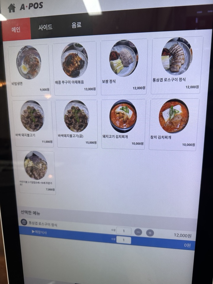 이날 주문한 음식은 통삼겹 로스구이 정식이이었습니다.