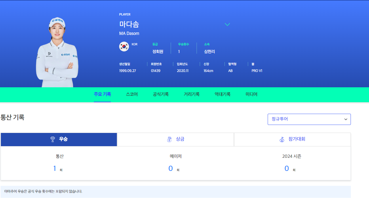 | KLPGA투어 - 박도영프로 (프로필, 인스타그램, 우승기록, 소속팀) (1) | 2024.10.04 |
