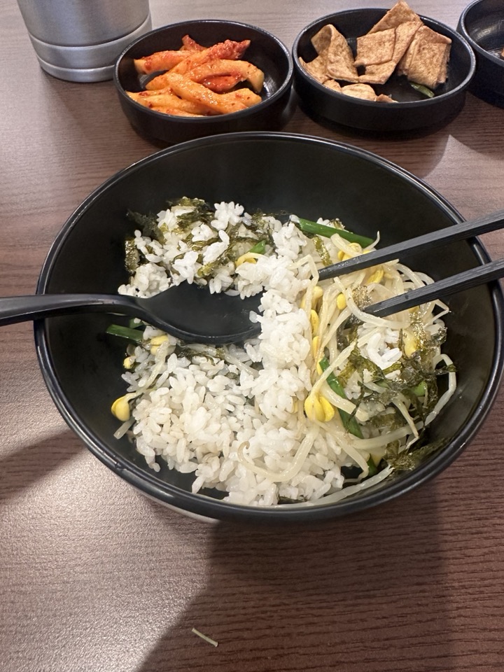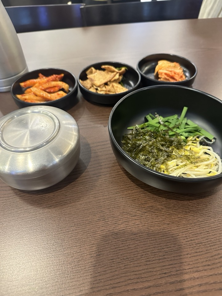 순두부를 주문하고 기다리니 밑반찬 및 비빔밥 형식으로 먹을 수 있는 밥이 나왔습니다.