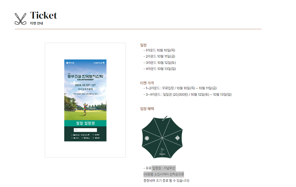 - 3~4라운드 : 일일권 (20,000원) / 10월 12일(토) ~ 10월 13일(일)