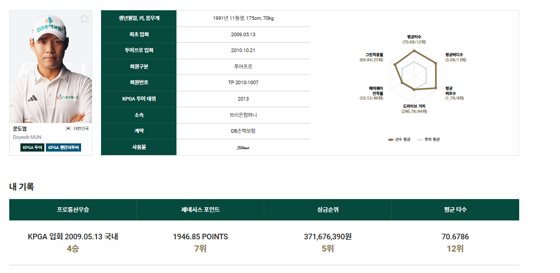문도엽프로는 현재 장희민프로, 서요섭프로와 같이 DB손해보험 골프단에 소속중입니다. 또한, 현재 더채리티클래식 2024에서 좋은 성적을 보여주고 있어서 우승이 기대되는 선수 중 한명입니다.