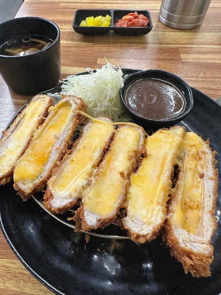 순식간에 먹게 되서 따로 먹는 모습을 찍지는 않았는데, 치즈가 가득찬 치즈 돈가스이고, 윤기가 차르르르르 해서 비주얼적으로도 굿굿굿!! 돈까스의 바삭함도 그대로 유지되어 있습니다.