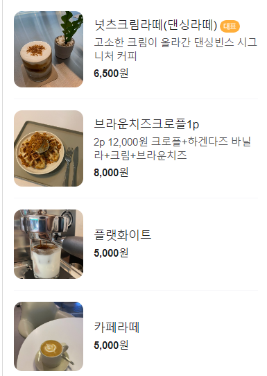 기본적으로 카페메뉴들을 구비하고 있고, 넛츠크림라떼가 댄싱빈스의 대표적인 메뉴입니다.