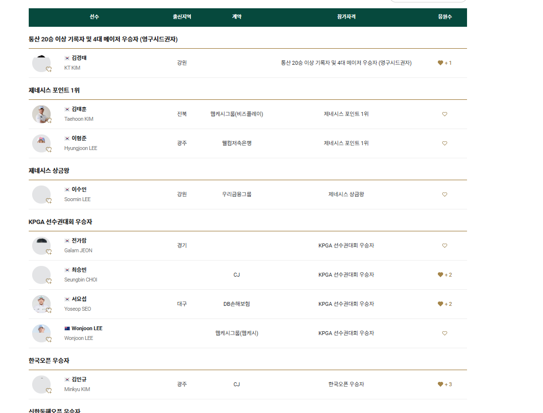 KPGA투어 - 동아회원권그룹 오픈 2024 출전선수