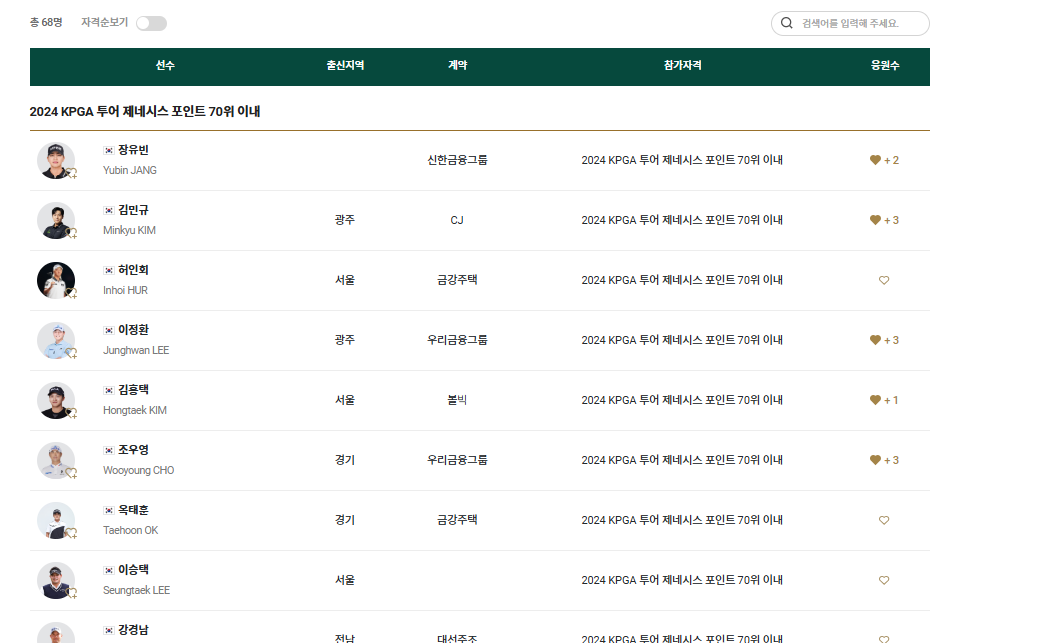 KPGA투어 - kpga 투어챔피언십 출전선수