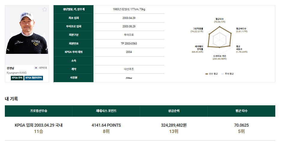 아래 사이트에서 강경남 프로의 활약을 더 자세히 살펴볼 수 있습니다.